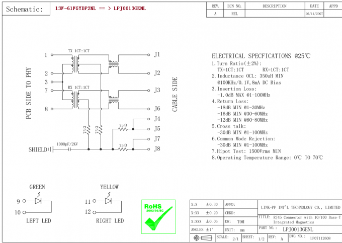 | 13F-61FGYDP2NL | LPJ0013GENL | Bunun için PP | RJ45 10/100 BASE-T JACK |